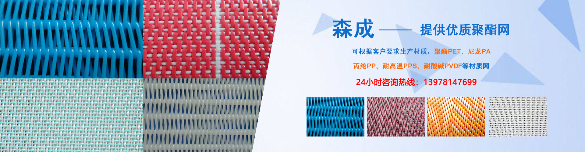同時(shí)主導(dǎo)產(chǎn)品還有:聚酯成型網(wǎng),聚酯平織干網(wǎng)、聚酯螺旋干網(wǎng)、聚酯銅絲抗靜電網(wǎng),主要用于造紙、環(huán)保、印染、洗煤、石油化工、制藥、食品烘干、人造板廠、冶金、電廠脫硫、礦業(yè)、發(fā)酵等行業(yè)。公司產(chǎn)品具有耐酸堿、耐高溫、濾水好、透氣好、尺寸運(yùn)行穩(wěn)定的特點(diǎn),憑質(zhì)優(yōu)價(jià)廉及優(yōu)良的售前、售后服務(wù)暢銷國內(nèi)還可以根據(jù)用戶要求生產(chǎn)各種規(guī)格型號(hào)的特殊用網(wǎng),其長(zhǎng)度、寬度、密度可根據(jù)用戶要求臨時(shí)確定,產(chǎn)品質(zhì)量上乘,在廣大客戶中享有很高的聲譽(yù)。 p>